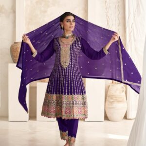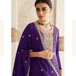 Purple Chinon Silk Suit Set with Heavy Embroidery – Regal Sophistication Redefined