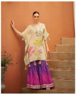 Step into effortless grace with this striking Beige Kaftan and Purple Gharara Set, where soft neutrals meet bold vibrancy for a modern ethnic statement.