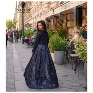 The highlight? The voluminous purple gharara bottoms bring dramatic flair, rich royal purple hue, and graceful sway with every step — perfect for creating that wow moment at weddings, sangeets, receptions, or festive soirées.