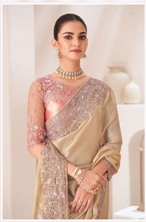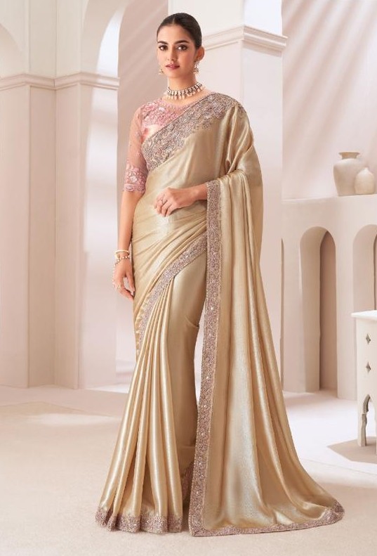 Gold beige Satin Silk saree