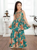 Green heavy sequins kids printed Sharara set