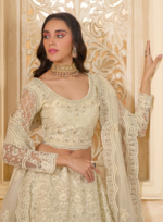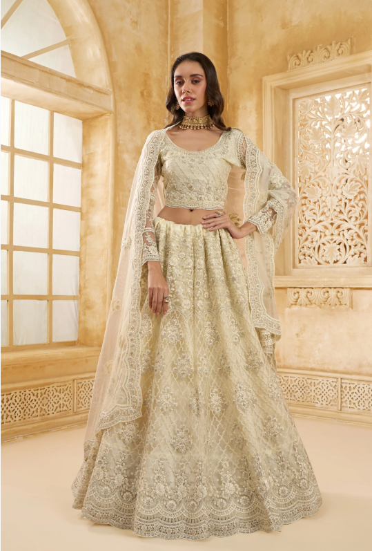 Ivory Color Heavy Embroidered Net Lehenga Choli With Dupatta