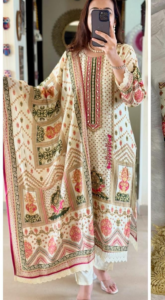 Best Quality Muslin Pakistani Suits with digital prints and lace detailing certainly sound like a fashionable choice for upcoming occasions. The comfort and style they offer can make them a great addition to your wardrobe