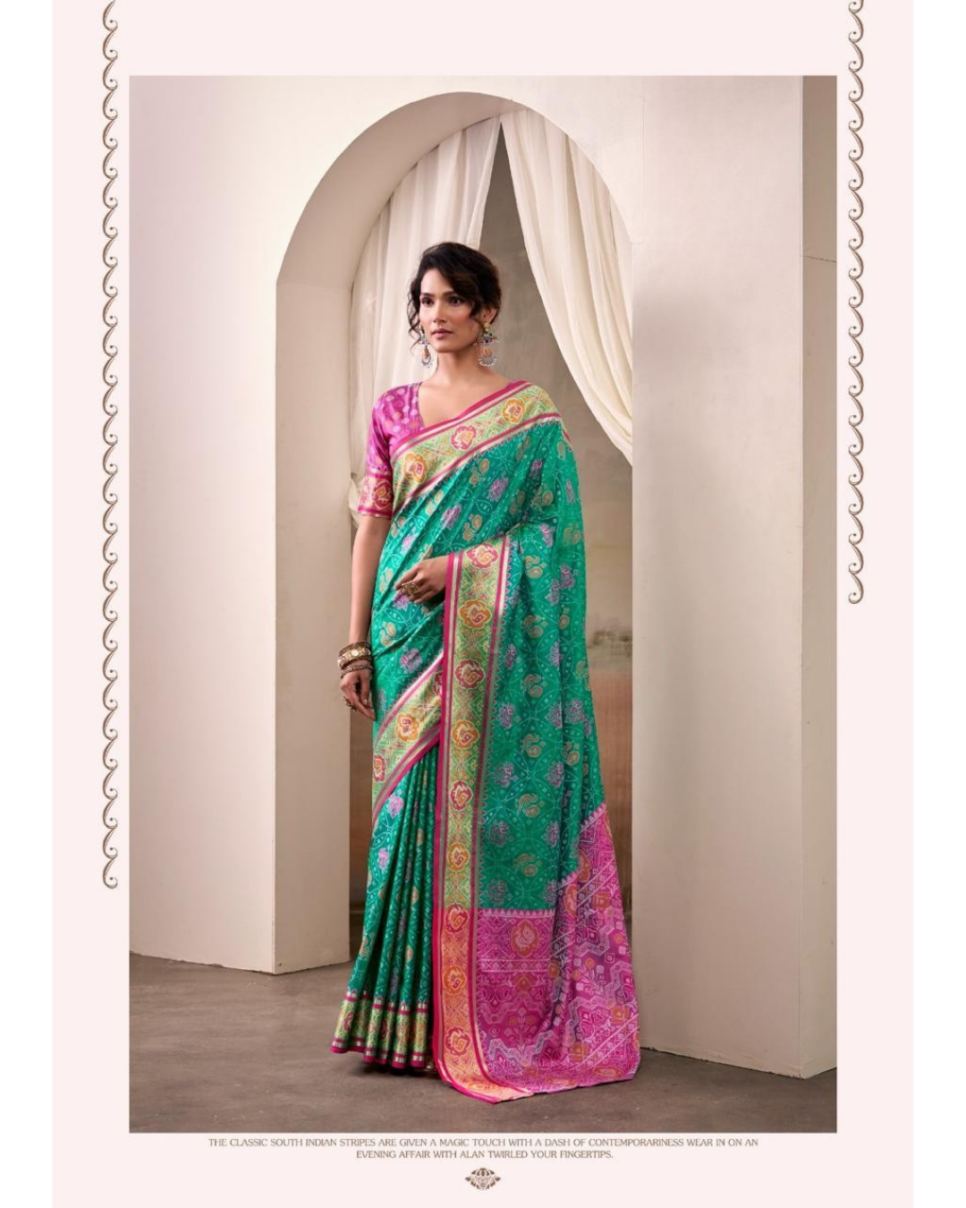 Celebrate timeless artistry with this exquisite green patola silk handloom saree — a masterpiece of Gujarati craftsmanship from the legendary looms of Patan or Rajkot.
