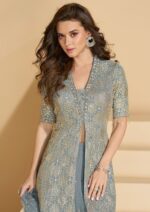 Light Grey Georgette Indo-Western 3PC Set with Heavy Sequins