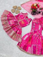 Glam up with our fully stitched, ready-to-wear outfit featuring heavy Japan satin, 5mm sequin embroidery, and digital prints. Perfect for festive occasions!