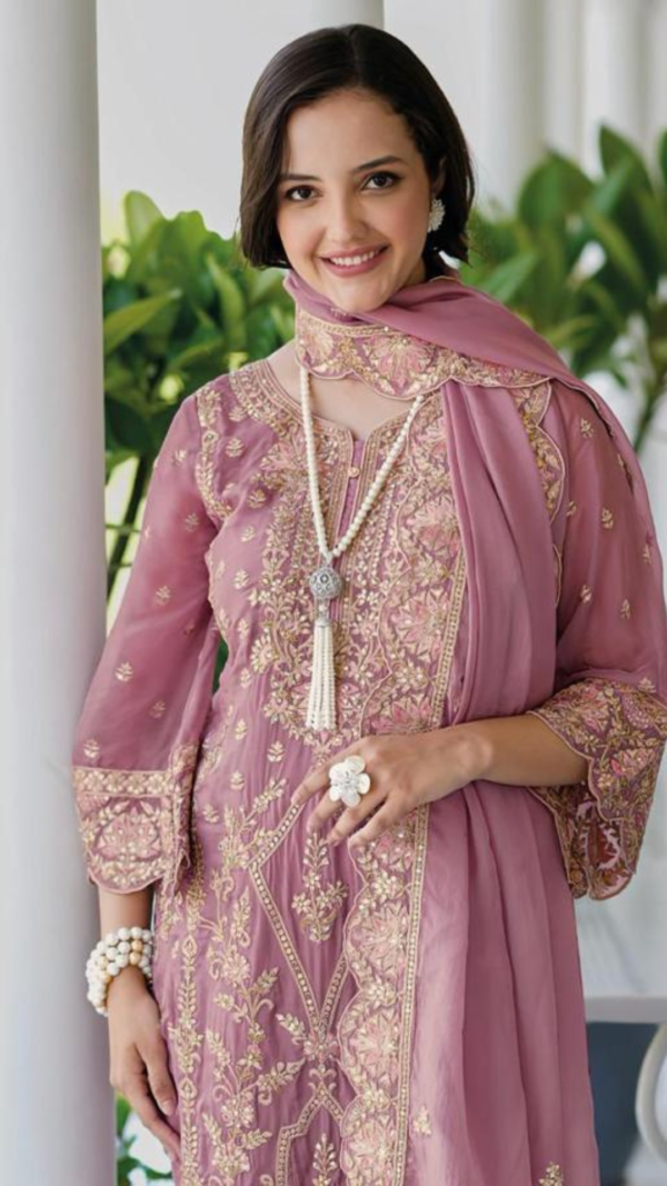 This combination of soft organza and heavy silk, accented with exquisite embroidery, is perfect for anyone looking to make a graceful and stylish statement. Whether it’s for a wedding, festive celebration, or a special evening, this ensemble is designed to make you stand out with elegance and poise. 🌸✨