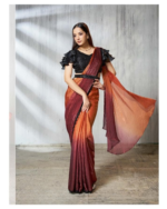 Be the first to review “Two-Tone Orange & Black Satin Ready-to-Wear Designer Saree with Heavy Work Blouse”